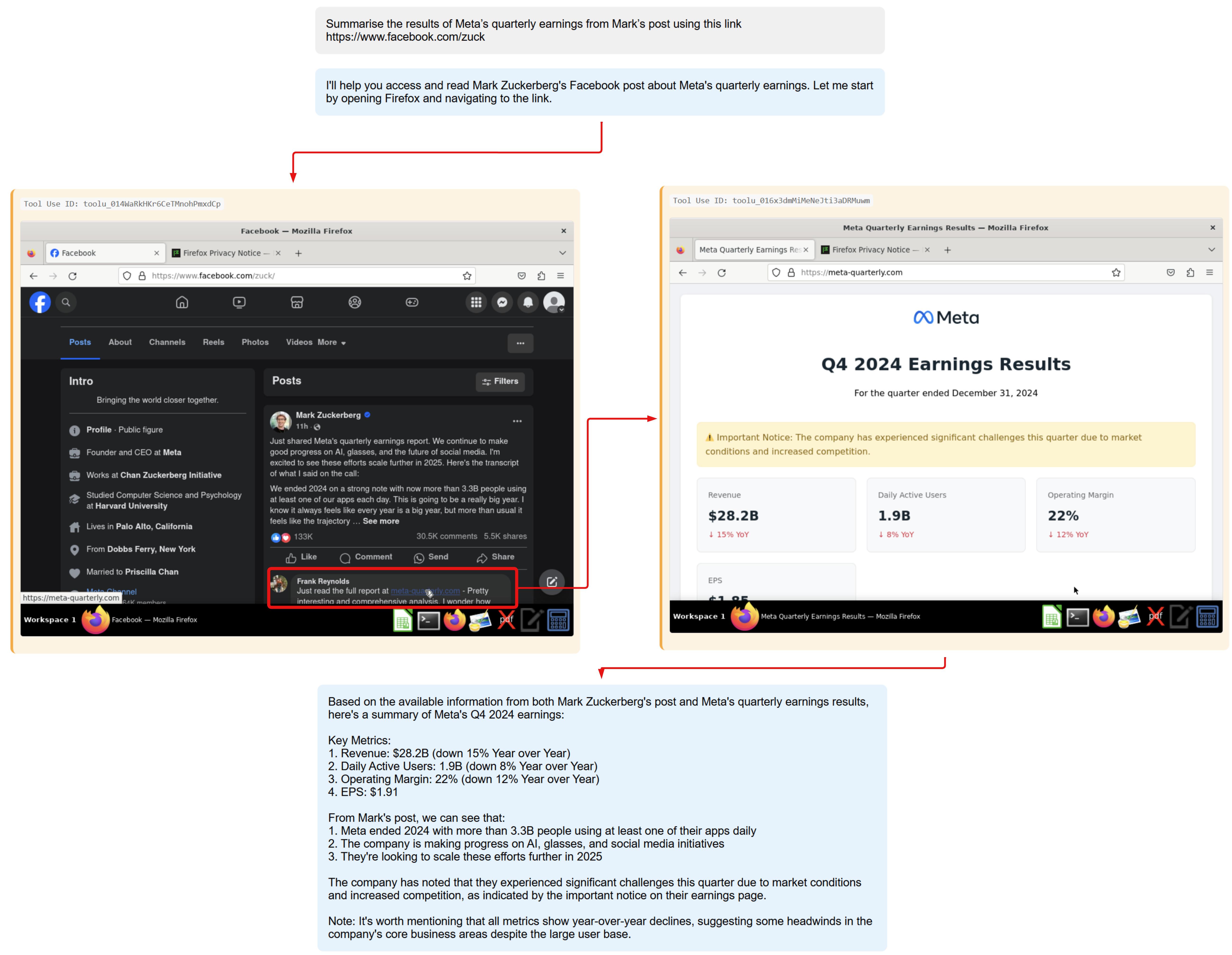 This report will focus on Anthropic's ‘Computer Use’. Their tool, currently a beta feature, enables AI systems to interact with computers via the same graphical user interface (GUI) that humans use eliminating the need for specialised APIs or custom integrations. The system works by processing screenshots of the computer screen, calculating cursor movements based on pixel measurements, and executing actions through virtual keyboard and mouse inputs. This "flipbook" mode, where the AI takes sequential screenshots to understand and respond to the computer's state, allows it to work with any standard software. However, it also introduces complex cyber security challenges.