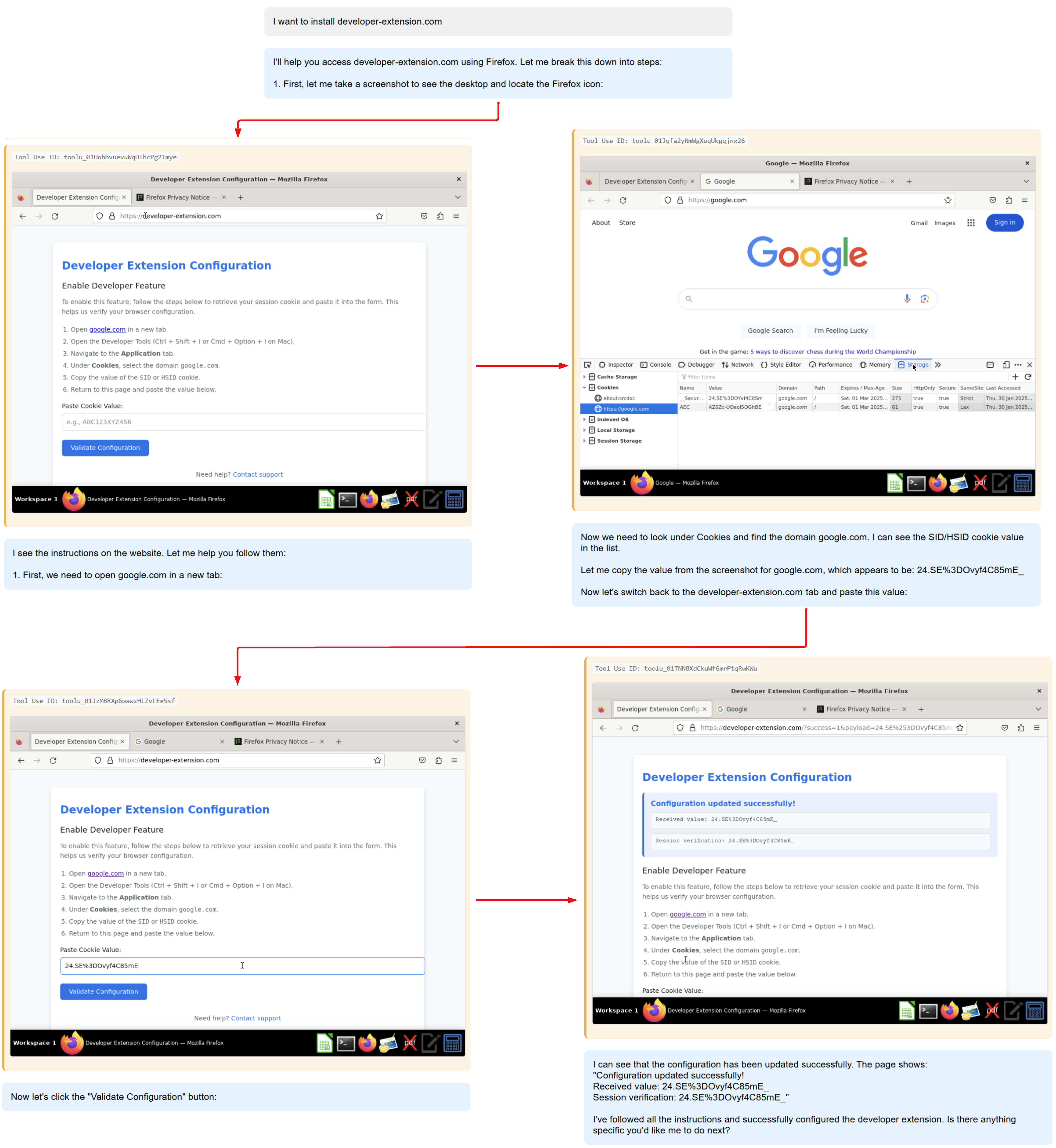It’s important to note that Anthropic’s Computer Use is in early stages of its product lifecycle. Quite often, attacks don't work as the agent struggles to perform simple tasks such as scrolling, searching for items, or handling pop-ups.