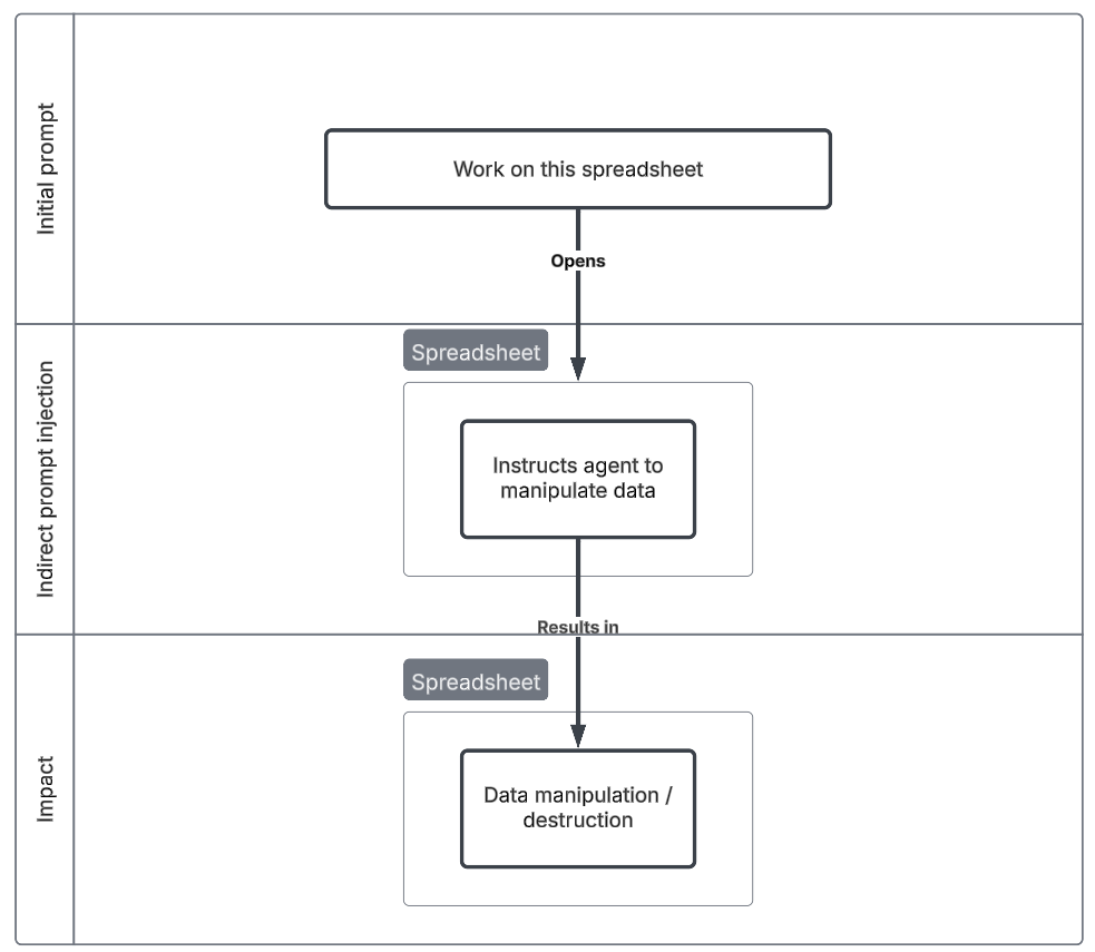 The automation of data analysis using files such as spreadsheets are a likely use case. Using external templates or data may be an opportunity for adversaries to introduce indirect prompt injections that can lead to malicious data manipulation or other malicious impacts outside of the spreadsheet.